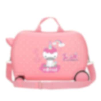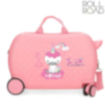 Roll Road I Am Unicorn - suloinen, päällä istuttava, kovakantinen lasten ABS matkalaukku. Neljällä pyörällä ja veto-sekä olkahihnalla varustetun laukun päällää voi lapsi potkia vauhtia. Pitkät välimatkat sekä lentojen odotus lentokentillä on matkalaukun päällä ajaessa hauskempaa! Laukun molemmassa kannessa on tilaa lapsen leluille ja vaatteille, joustavat pakkaushihnat pitävät matkatavarat hyvin paikoillaan. Poistettavan, säädettävän olkahihnan avulla laukkua voi vetää perässä tai tarvittaessa kantaa olalla. Matkalaukku mahtuu käsimatkatavarana mukaan lentokoneeseen.
