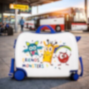 Roll Road Little Me Friends ihastuttava ja hauska lasten päällä istuttava matkalaukku. Neljällä pyörällä ja veto-sekä olkahihnalla varustetun laukun päällää voi lapsi potkia vauhtia. Pitkät välimatkat sekä lentojen odotus lentokentillä on nyt kerrassaan hauskempaa! Matkalaukussa on runsaasti tilaa lapsen leluille ja vaatteille, samalla se toimii hyvin myös kuljetusvälineena tai lelulaatikkona. Matkalaukku mahtuu mukaan käsimatkatavarana lentokoneeseen.