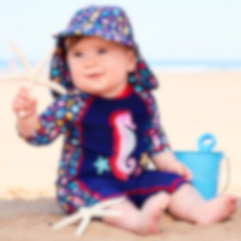 • Yksiosainen UV-suojapuku vauvalle ja taaperolle 6 kk. - 30 kk.