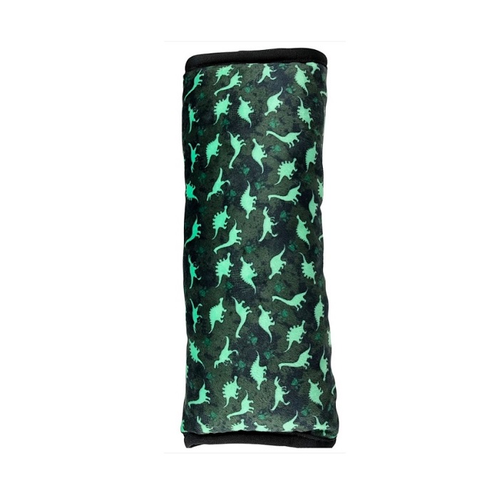 Heckbo Dinosaurs mukava pehmeästä fleece-kankaasta turvavyötyyny autoon estää hiertymiä sekä antaa tukea lapsen päälle ja niskalle nukkuessa. Turvavyötyyny kiinnitetään turvavyöhön tarranauha-kiinnikkeen avulla, sitä on helppo asentaa sekä irrottaa. Tyynyn päällistä voi konepestä erikseen. Erittäin mukava apuväline lisämään mukavuutta autossa.