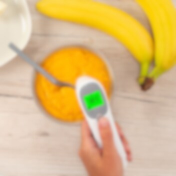 • Tarkoitettu mittamaan lapsen kuumetta otsalta, mutta myös ruuan, veden tai ilman lämpötilaa