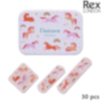 London Rex Unicorns uudelleenkäytettävässä rasiassa on 30 lateksitonta lasten laastaria kolmessa eri koossa, jotka sopivat erinomaisesti pienten haavojen, naarmujen ja arjen pikku kolhujen hoitoon. Eri kokojen ansiosta sinulla on aina sopiva laastari valmiina – olitpa sitten kotona, koulussa tai ulkona seikkailemassa. Suloinen peltirasia sisältää iloisia yksisarvisaiheisia laastareita, jotka piristävät mieltä pienten kolhujen ja naarmujen sattuessa.