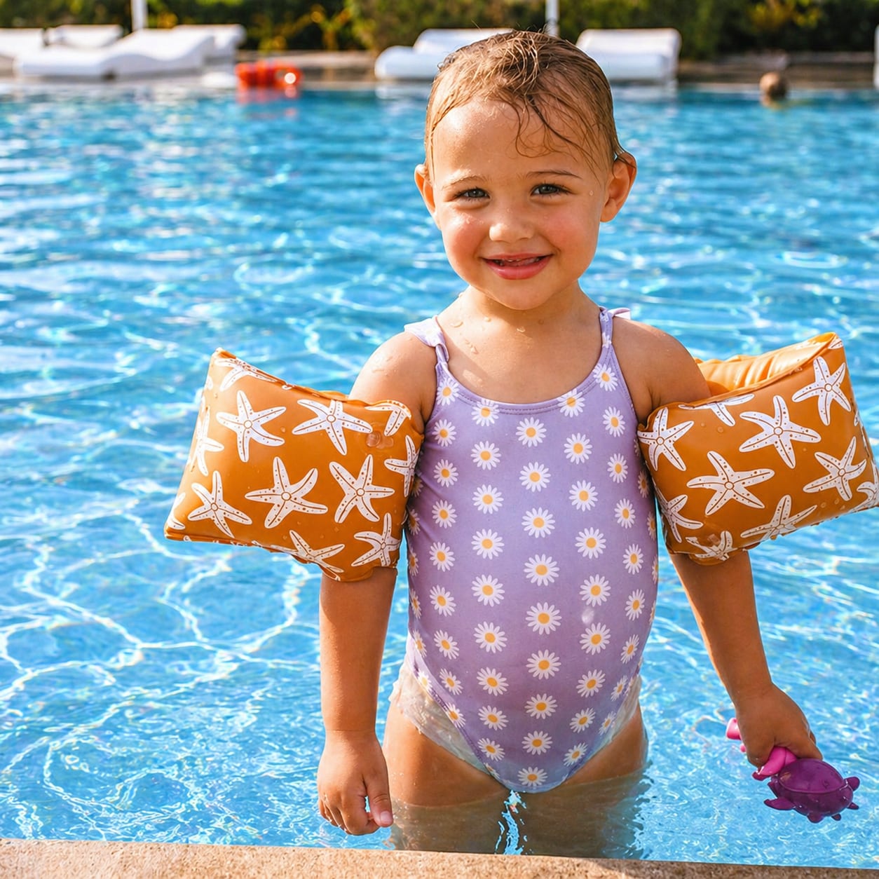 Swim Essentials Sea Stars tyylikkäät puhallettavat uimakellukkeet 2-6 vuotialle uimaan opettelevalle lapselle. Kellukkeissa on kaksinkertaiset ilmakammiot sekä turvaventtiilit. Sopii mainiosti lapsen vesileikkeihin sekä uimaan opetteluun.