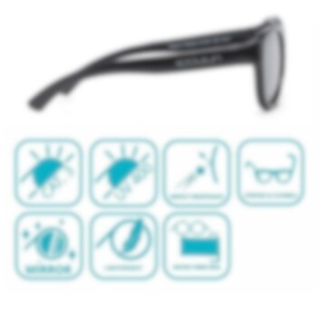 Koolsun Air Beluga Black tyylikkäät, kestävät aurinkolasit lapsille 0-8 ikävuotta. Koolsun Air-aurinkolasit suojaavat lastasi erinomaisesti auringonvalolta sekä vaaralliseltä UV-sätelyltä, sekä kesällä että talvella. Auronkolasien kehykset ovat valmistettuja kestävästä korkealaatuisesta TPE muovista, niitten Revo- polykarbonaatti-linsseissa on 100% sisäänrakennettu UVA-sekä UVB-säteilyn suoja. Sen takia linssien UV-suojaominaisuus ei vähene käytössä, naarmujen sattuessa.