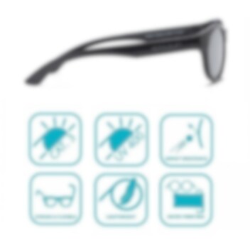 Koolsun Boston Black tyylikkäät, kestävät aurinkolasit lapsille 1-8 ikävuotta. Koolsun Boston aurinkolasit suojaavat lastasi erinomaisesti auringonvalolta sekä vaaralliseltä UV-sätelyltä, sekä kesällä että talvella. Auronkolasien kehykset ovat valmistettuja kestävästä korkealaatuisesta TPE muovista, niitten tummissa Revo- polykarbonaatti-linsseissa on 100% sisäänrakennettu UVA-sekä UVB-säteilyn suoja. Sen takia linssien UV-suojaominaisuus ei vähene käytössä, naarmujen sattuessa.