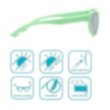 Koolsun Boston Green Ash tyylikkäät, kestävät aurinkolasit lapsille 1-8 ikävuotta. Koolsun Boston aurinkolasit suojaavat lastasi erinomaisesti auringonvalolta sekä vaaralliseltä UV-sätelyltä, sekä kesällä että talvella. Auronkolasien kehykset ovat valmistettuja kestävästä korkealaatuisesta TPE muovista, niitten tummissa Revo- polykarbonaatti-linsseissa on 100% sisäänrakennettu UVA-sekä UVB-säteilyn suoja. Sen takia linssien UV-suojaominaisuus ei vähene käytössä, naarmujen sattuessa.