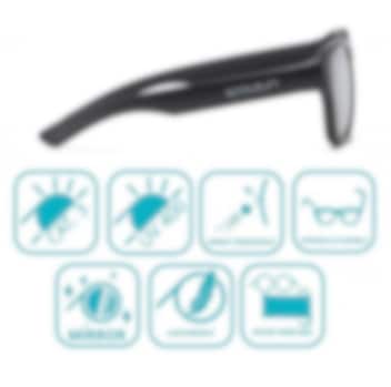 Koolsun Aspen Black tyylikkäät, kestävät aurinkolasit lapsille 1-12 ikävuotta. Laadukkaat Koolsun Aspen aurinkolasit suojaavat lastasi erinomaisesti auringonvalolta sekä vaaralliseltä UV-sätelyltä, sekä kesällä että talvella. Auronkolasien kehykset ovat valmistettuja kestävästä, korkealaatuisesta TPE muovista, linssien UV-suoja on sisäänrakennettu materiaaliin, joten suoja ei heikkene käytön aikana – edes silloin, jos linsseihin tulee pieniä naarmuja.