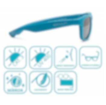 Koolsun Wave Cendre Blue tyylikkäät, kestävät ja laadukkaat aurinkolasit lapsille 1-10 ikävuotta. Koolsun Wave-aurinkolasit suojaavat lastasi erinomaisesti auringonvalolta sekä vaaralliseltä UV-sätelyltä, sekä kesällä että talvella. Auronkolasit ovat valmistettuja kestävästä korkealaatuisesta TPE muovista, niitten REVO- polykarbonaatti-linsseissa on 100% sisäänrakennettu UVA-sekä UVB-säteilyn suoja. Linssien UV-suojaominaisuus ei vähene käytössä, naarmujen tullessa. Mukana pehmeästä kankaasta säilytyspussi.