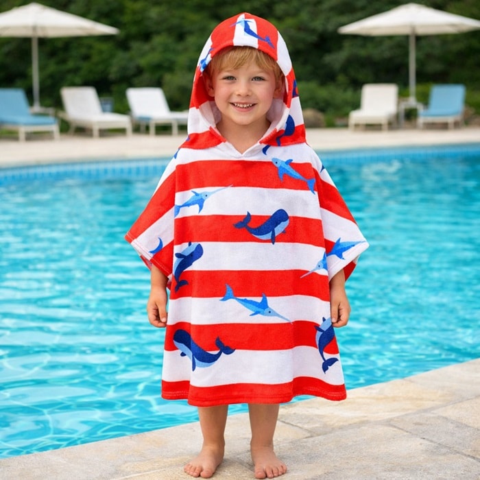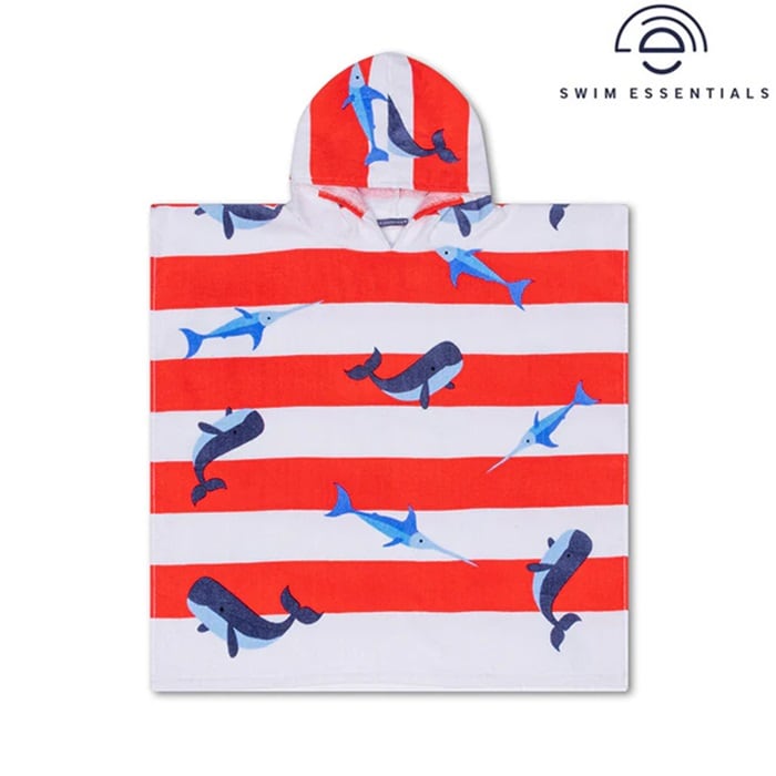 Swim Essentials Whale - tyylikäs ja mukava huppupyyhe ja kylpyponcho 100% pehmeästä puuvillafroteekankaasta sopii lapsille noin 1-6 ikävuotta. Pehmeä hupullinen kylpypyyhe pitää lapsen aina lämpimäna uinnin tai kylvyn jälkeen & on erittäin pehmeä, mukava ja suojaava päällä. Erinomainen ottaa mukaan rannalle, uima-altaalle, lomamatkalle, tai käyttää jokapäiväisesti kotona.