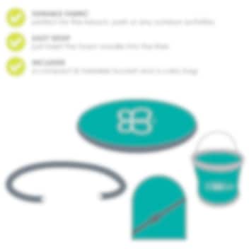 Pakkauksessa sisältyy: Uima-allas, reunan pehmuste, taitettava ämpäri, kuljetuskassi