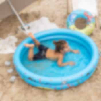 • Puhallettava, helposti kasattava uima-allas, uimarengas sekä rantapallo lapsille