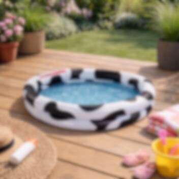 Swim Essentials Cow pieni puhallettava, helposti kasattava lasten uima-allas, joka mahtuu vaikka matkalle mukaan! Uima-allas kootaan ja pakataan minuuteissa. Altaassa on turvaventiilit sekä kaksi ilmakammiota. Erittäin helppokäyttöinen, uima-altaan voi ottaa mukaan aurinkolomalle, rannalle tai käyttää kesäisellä kotipihalla.