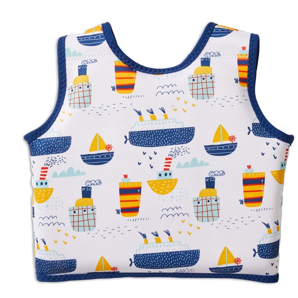 Splashabout Go Splash Tug Boats lasten uimaliivi on kellunta-apuväline, joka auttaa lastasi tottumaan veteen. Pehmeä, kevyt, sisäänrakennetuilla kellukkeilla varustettu neopreenikankaasta uimaliivi auttaa takamaan lapsen turvallisuutta vedessä, antaen hänen samalla liikkua vapaasti. Uimaliivin voi pakata täysin litteäksi, joten se ottaa vain vähän tilaa matkalaukussasi. Pehmeät saumat sekä superpehmeä, nopeasti kuivuva neopreenikangas estävät ihoärsytyksen ja hiertumat. Uimaliivi kiinnitetään vetoketjulla liivin edestä. Muista, ettei kelluntaliivi ole pelastusväline, sensijaan erittäin hyvä apuväline uintiin opetteluun ja lasten vesileikkeihin.