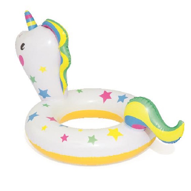 Bestway Yksisarvinen puhallettava eläimenmuotoinen uimarengas 3 - 6 vuotialle uimaan opettelevalle lapselle. Renkaassa on turva-venttiili turvallisuuden lisämiseksi. Sopii mainiosti lapsen vesileikkeihin sekä uimaan opetteluun
