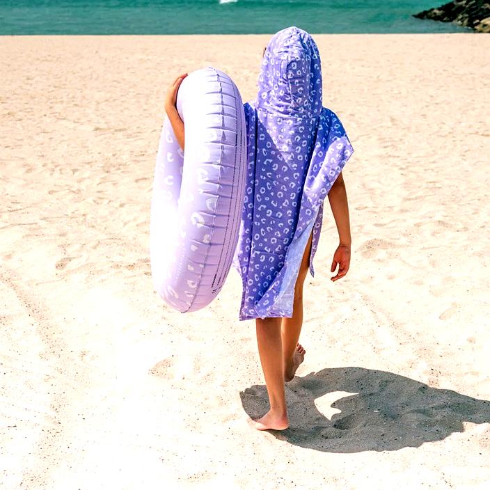 Swim Essentials Purple Leopard XL tyylikäs puhallettava uimarengas yli 6-vuotiaille uimaan opetteleville lapsille ja nuorille, tai aikuisille. Renkaassa on turva-venttiili turvallisuuden lisämiseksi. Sopii mainiosti lapsen vesileikkeihin sekä uimaan opetteluun.