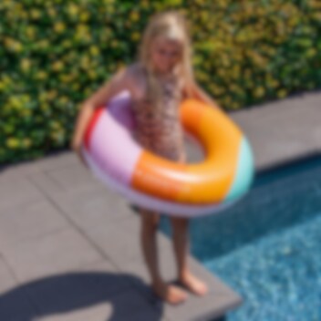 Swim Essentials Rainbow XL tyylikäs puhallettava uimarengas yli 6-vuotiaille uimaan opettelevalle lapsille ja nuorille, tai aikuisille. Renkaassa on turva-venttiili turvallisuuden lisämiseksi. Sopii mainiosti lapsen vesileikkeihin sekä uimaan opetteluun.