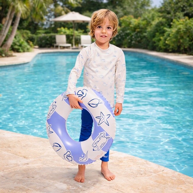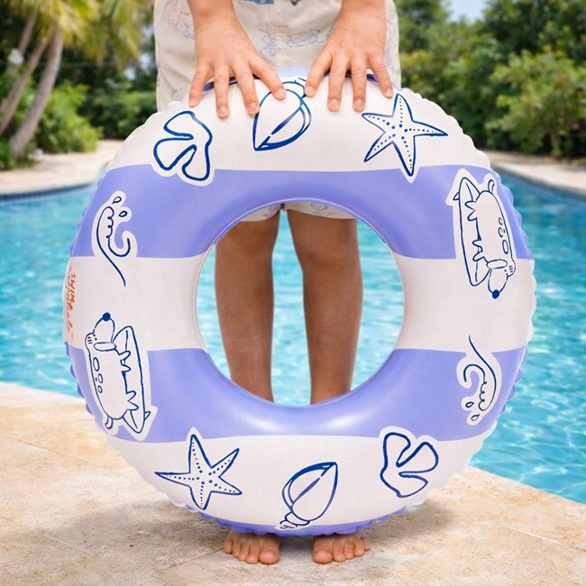 Swim Essentials Blue Surfer tyylikäs puhallettava uimarengas yli 3-vuotialle uimaan opettelevalle lapselle. Renkaassa on turva-venttiili turvallisuuden lisämiseksi. Sopii mainiosti lapsen vesileikkeihin sekä uimaan opetteluun.