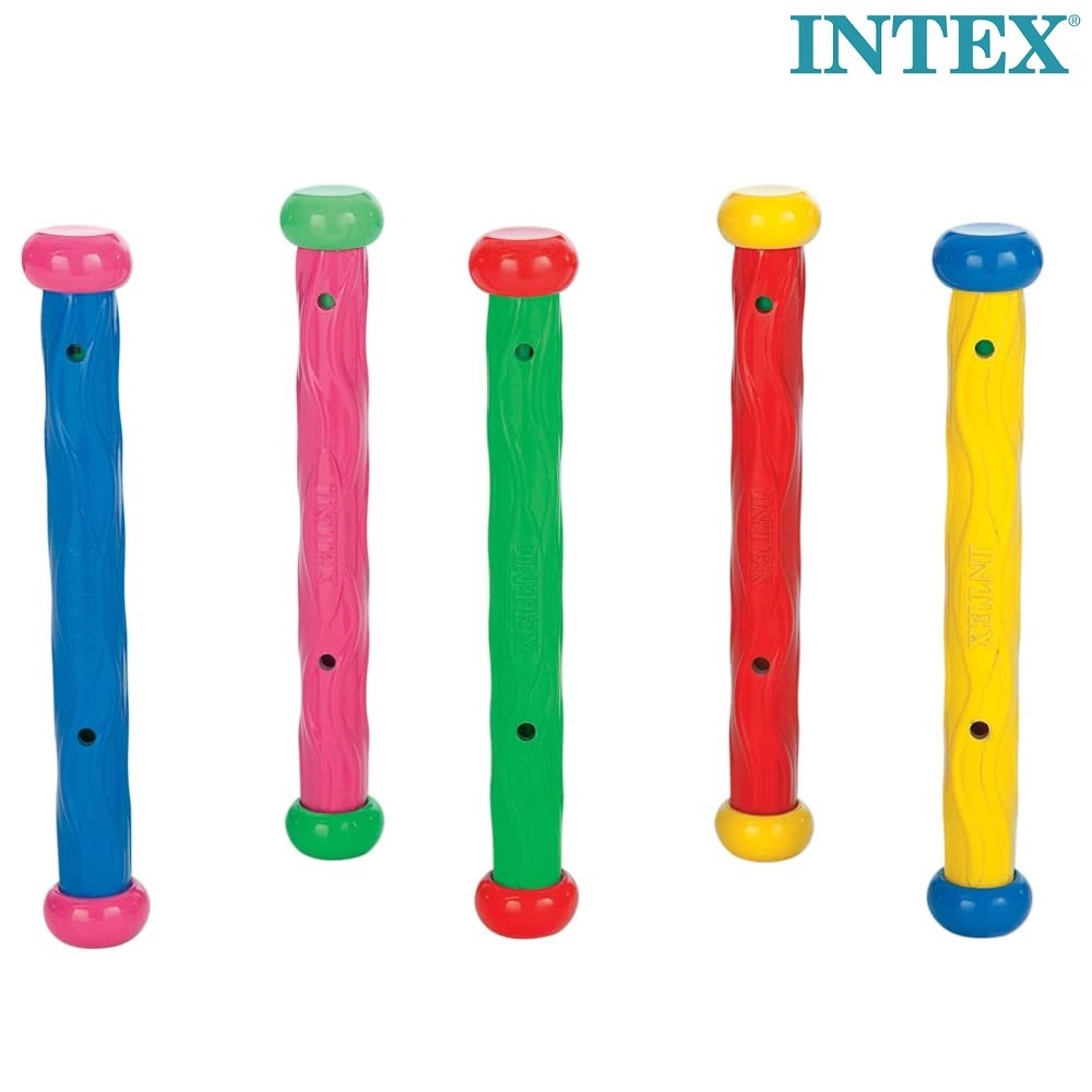 Intex Underwater Fun Sticks värikkäät sukellettavat tikut uppoavat uima-altaan pohjaan pystyasennossa sisäänrakennetun painon ansiosta. Sukellustikut auttaa lastasi kasvattamaan itseluottamusta vedessä sekä kehittämään uinti- ja sukellustaitoja leikin kautta. Keksi monenlaisia hauskoja vesikilpailuja ja leikkejä sukellustikkujen avulla. Setissä 5 eriväristä numeroitua sukellustikkua.