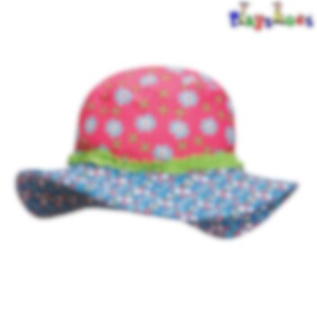 Playshoes Flowers hyvännäköinen ja suojaava lasten aurinkohattu. Lierihattu, joka suojaa auringon vaarallisilta UV-säteiltä, on valmistettu pehmeästä ja joustavasta Oeko-Tex materiaalista. Erittäin sopiva hattu suojakerroin 50+ lomamatkalle tai kesäisin kotirannalle.