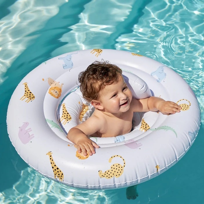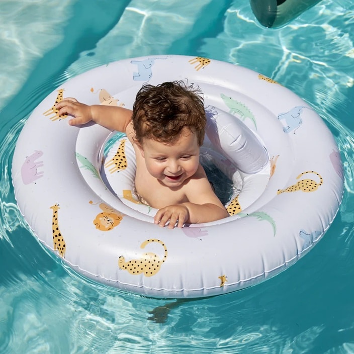 Swim Essentials Wild Life tyylikäs ja kestävä kellunta-apuväline, joka auttaa vauvaasi tottumaan veteen. Laadukas Swim Essentials uimatuoli takaa lapsen turvallisuuden vedessä, antaen hänen samalla liikkua vapaasti. Vauvan uimarengas on leveä ja pyöeränmuotoinen sekä valmistettu miellyttävän pehmeästä, täysin myrkyttömästä materiaalista. Neljä ilmakammiota sekä turvaventtiilit estävät ilmavuodot sekä takaavat tuolin vakauden vedessä. Tehokas apuväline vauvauintiin ja vesileikkeihin.