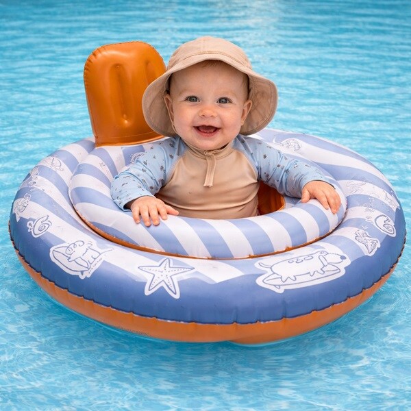Swim Essentials Surfer tyylikäs ja kestävä kellunta-apuväline, joka auttaa vauvaasi tottumaan veteen. Laadukas Swim Essentials uimatuoli takaa lapsen turvallisuuden vedessä, antaen hänen samalla liikkua vapaasti. Vauvan uimarengas on leveä ja pyöeränmuotoinen sekä valmistettu miellyttävän pehmeästä, täysin myrkyttömästä materiaalista. Neljä ilmakammiota sekä turvaventtiilit estävät ilmavuodot sekä takaavat tuolin vakauden vedessä. Tehokas apuväline vauvauintiin ja vesileikkeihin.