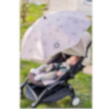 Dooky Stroller Parasol Umbrella Romantic Leaves Beige - kaunis ja kestävä yleismallinen UPF 50+ aurinkovarjo vaunuihin ja rattaisiin. Aurinkovarjoa on helppo kiinnittää "easyfix" asennusklipsin avulla mihin tahansa vaunuun tai rattaaseen, sekä säätää sen asentoa taipuvan varren avulla haluamansa asentoon 180 astetta. Aurinkovarjossa on tehokas UPF 50+ UV-säteilyn suoja, joten se suojaa lastasi tehokkaasti auringolta, mutta myös voimakkaalta tuuleta. Taitettuna aurinkovarjo on sen verran pienti, että mahtuu vaunun tavarakoriin tai käsilaukkuun.