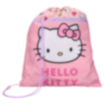 Hello Kitty Sweet Charm lasten nyörikassi, johon mahtuu lapsen jumppavaatteet, kengät, uimatarvikkeet, lelut tai päivän eväät. Kassi suljetaan kiristysnauhalla päältä , sitä on helppo puhdistaa. Kevyt ja monikäyttöinen nyörikassi kulkee mukavasti mukana ja sitä voi kantaa joko olalla tai selässä.