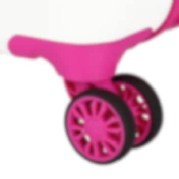 Minnihiiri Sunny Day kaunis lasten matkalaukku on valmistettu iskunkestävästä ABS- muovista. Matkalaukussa on neljä helposti ohjailtavaa hiljaista pyörää, säädettävä teleskooppi-kahva, TSA- numerokoodilukko laukun lukitsemiseksi sekä runsaasti tilaa lapsen matkatavaralle. Matkalaukun kannessa vetoketjullinen suljettava osasto sekä joustavat kiristyshihnat toisella puolella. Minnihiiri matkustaa-teemaiset kuviot sekä tukeva nostokahva, ABS-matkalaukku sopii lentolaukuksi lapsille alkaen noin 4. ikävuodesta.