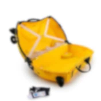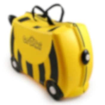 Trunki Bernard Mehiläinen ihastuttava, kätevä ja palkittu lasten päällä istuttava matkalaukku. Pyörillä ja vetohihnalla varustetun laukun päällää voi myös istua ja potkia vauhtia. Pitkät välimatkat sekä lentojen odotus lentokentillä on nyt kerrassaan hauskempaa! Trunki matkalaukussa on mukavasti tilaa lapsen leluille ja vaatteille, samalla se toimii hyvin kuljetusvälineena tai lelulaatikkona. Paikan päällä lomakohteessa tai kotona Trunki - laukkua voi käyttää vaikka potkuautona.