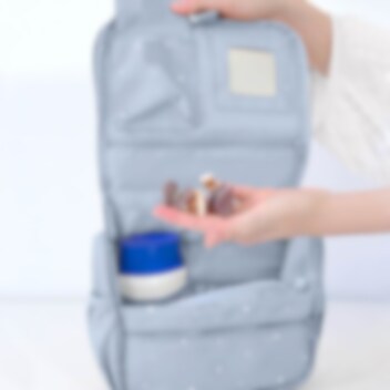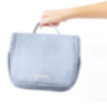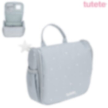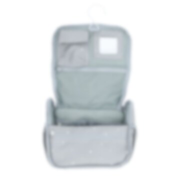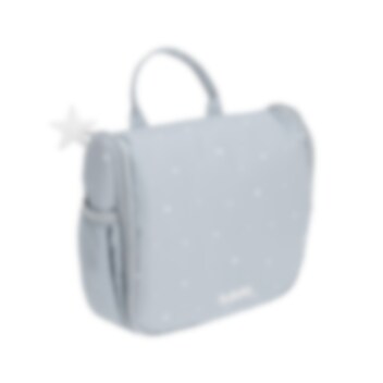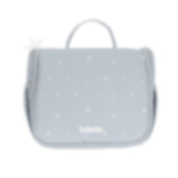 Tutete Stars Blue laadukas, kaunis ja kätevä lasten toilettilaukku käytettäväksi kotona, yökylässä tai reissulla. Täma kaunis pastellivärinen lasten toilettilaukku sopii hyvin kaikenikäisille lapsille, siitä löytyy monta erikokoista vetoketjulla tai tarranauhalla suljettavaa sisätaskua pitämään lapsen hygieniatarvikkeet järjestykessä, puhdistettava sisävuori sekä kätevän pieni peili. Ripustuskoukun avulla on toilettilaukkua helppo ripustaa sekä käyttää avattuna. Laukun takapuolella on iso vetoketjullinen tasku, sivuissa joustavat taskut sekä päällä laukun kantamista helpotta kantokahva. Tutete lasten toilettilaukku on valmistettu helposti puhdistettavasta, vettä hylkivästä materiaalista.