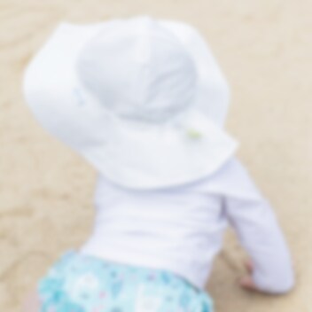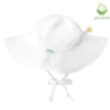 Green Sprouts White mukava ja suojaava lasten aurinkohattu UV-suojalla. Hatussa on leveä lieri, joka suojaa lasta auringon vaarallisilta UV-säteiltä sekä kirkkaalta valolta. Kesähattu kiinnitetään lapsen leuan alle hihnoilla, joten se pysyy hyvin päässä. Kesähatussa on myös mukava hengittävä sisävuori sekä se kuivuu nopeasti. Erinomainen käyttää aurinkomatkalla ja kesäisin kotona.