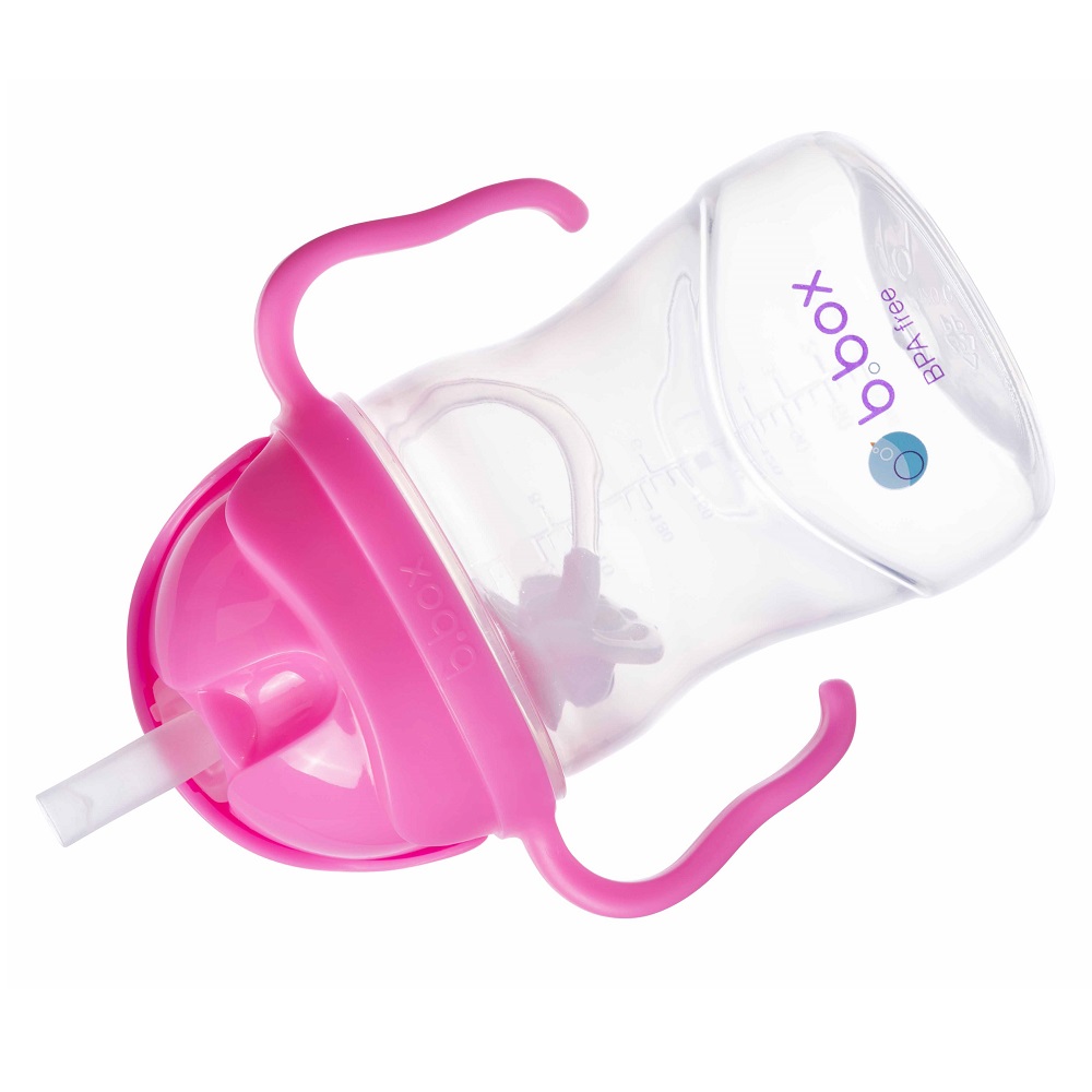 B.box Sippy Cup Pomegranade pillimuki juomaan opettelevalle vauvalle ja taaperolle, joka ei enää tarvitse tuttipulloa. Juomapullo on muotoiltu juuri lapsen pieniä käsiä ajatellen, b.box pullon "Flip-top" käännettävä kansi sekä vuodonestoventtiili ehkäisevät roiskeilta sekä varmistavat, ettei lapsi nielaise ilmakuplia. Juomapullon pillissa on erityinen paino, joka seuraa juoman liikkeita, joten lapsi voi juoda pullosta missä tahansa asennossa. B.box Sippy Cup on valmistettu BPA-, PVC-, sekä ftalaattivapaasta materiaalista sekä sitä voi pestä tiskikoneessa.