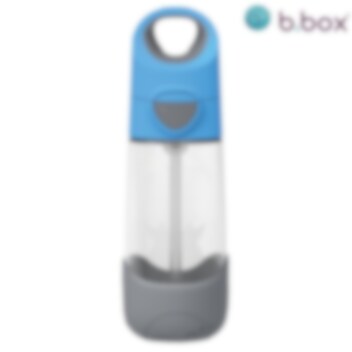 B.box Tritan Drink Bottle Blue Slate - kätevä ja laadukas, tipaton pillipullo lapsille. Juomapullon pehmeä ja mukava suukappale taittuu kuljetuksen ajaksi kannen alle, sulkien samassa pullon tiiviiksi. Pitkän ja joustavan silikonisen juomapillin ansiosta lapsi voi juoda pullosta joka asennossa sekä loppuun asti. Kansi avataan ja suljetaan näppärästi painikkeen avulla, pullon ergonominen kolmion muoto tekee siitä lapselle erittäin mukavan käyttää. Integroidun kantolenkin avulla pulloa voi helposti ripustaa ja kantaa. B.box juomapullo on valmistettu kestävästä ftlalaatti ja BPA-vapaasta Tritan-muovista, se on hajuton sekä helppo käyttää ja puhdistaa jokapäiväisesti.