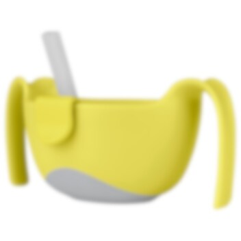 B.box Bowl & Straw Lemon Sherbet fiksu kahvallinen ruokakulho monella käyttötavalla. Kulhossa on anti-slip pohja sekä lapselle mukavat, isot kahvat - helppo pitää pienissä käsissä. Erikoisominaisuuksina kulhossa on fiksu irrotettava juomapilli, josta lapsen on helppo juoda esimerkiksi velliä, jogurttia, soppaa tai maitoa. Kulhoa saa käyttää myös eväskuppina, kiinnittäen siiheen pehmeän kannen, jossa on silikoniset läpät estääkseen ruoan tippumisen lattialle. Säilytykseen ja kuljetukseen on setissä mukana myös tavanomainen kansi. Kulhoa voi käyttää mihin tahansa ruokaan tai välipaloihin - pillillä tai ilman, kansilla tai ilman, eväskuppina tai tavanomaisena kulhona. Monta eri kulhoa on helppo varastoida toinen toisensa sisällä. Tuote on BPA-, PVC- sekä ftalaatti-vapaa sekä kestää sekä mikrouunin, että tiskikonekäytön. Kätevä apuväline lapsen syöttämiseen kotona ja kodin ulkopuolella.