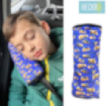 Heckbo Construction mukava pehmeästä fleece-kankaasta turvavyötyyny autoon estää hiertymiä sekä antaa tukea lapsen päälle ja niskalle nukkuessa. Turvavyötyyny kiinnitetään turvavyöhön tarranauha-kiinnikkeen avulla, sitä on helppo asentaa sekä irrottaa. Tyynyn päällistä voi konepestä erikseen. Erittäin mukava apuväline lisämään mukavuutta autossa.