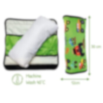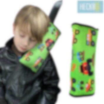 Heckbo Monster Trucks mukava pehmeästä fleece-kankaasta turvavyötyyny autoon estää hiertymiä sekä antaa tukea lapsen päälle ja niskalle nukkuessa. Turvavyötyyny kiinnitetään turvavyöhön tarranauha-kiinnikkeen avulla, sitä on helppo asentaa sekä irrottaa. Tyynyn päällistä voi konepestä erikseen. Erittäin mukava apuväline lisämään mukavuutta autossa.