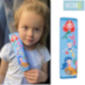 Heckbo Mermaids mukava ja pehmeä turvavyön pehmuste tarranauhakiinnityksellä autoon, rattaisiin tai turvakaukaloon, joka estää turvavyötä hiertämästä lapsen kaulaa ja ihoa vasten.
