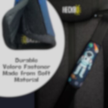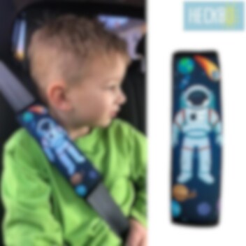 Heckbo Space - mukavan pehmeä turvavyön pehmuste tarranauhakiinnityksellä autoon, rattaisiin tai turvakaukaloon, joka estää turvavyötä hiertämästä lapsen kaulaa ja ihoa vasten.