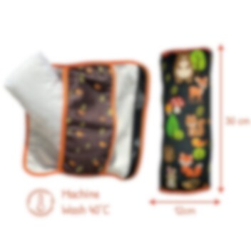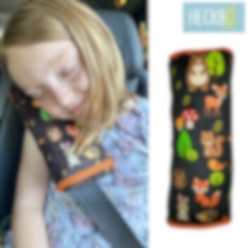 Heckbo Forest Animals mukava pehmeästä fleece-kankaasta turvavyötyyny autoon estää hiertymiä sekä antaa tukea lapsen päälle ja niskalle nukkuessa. Turvavyötyyny kiinnitetään turvavyöhön tarranauha-kiinnikkeen avulla, sitä on helppo asentaa sekä irrottaa. Tyynyn päällistä voi konepestä erikseen. Erittäin mukava apuväline lisämään mukavuutta autossa.