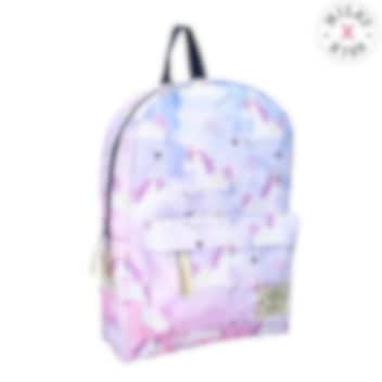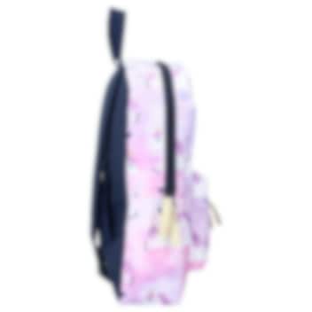 Milky Kiss tyylikäs lasten päiväreppu kouluun, esikouluun, luontoretkelle, tai matkalle mukaan. Repussa on iso vetoketjullinen päälokero, pienempi vetoketjullinen tasku repun päällä, pehmustettu selkäosa, kätevä nostokahva sekä säädettävät, pehmustetut olkaremmit. Milky Kiss kaunisyksisarvis- reppu sopii lapsille noin 3-4. ikävuodesta alkaen.
