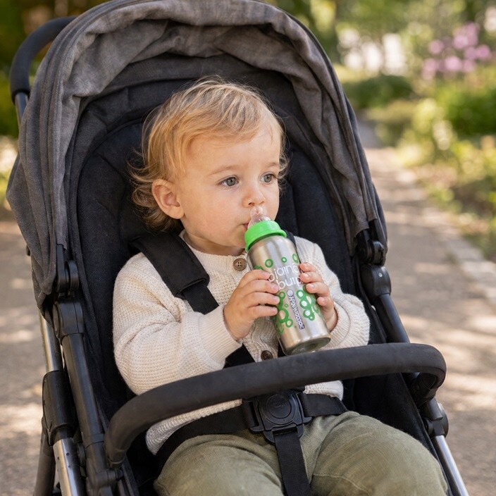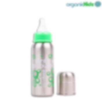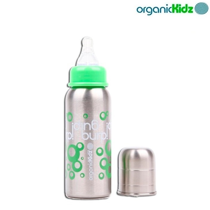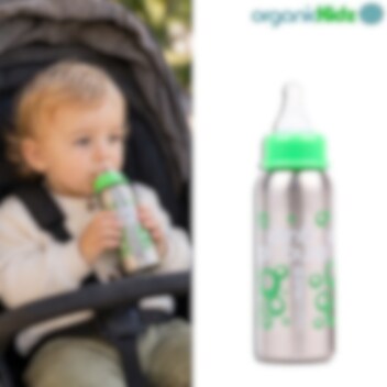 OrganicKidz 200 ml tuttipullo ruostumattomasta teräksestä. Ruostumattomasta teräksestä pullo on pitkäikäinen sekä varma vaihtoehto muovi-ja alumiinipulloille, sillä ruostumaton teräs on lähes särkymätön eikä lisää lapsen juomalle metallin makua. Erinomainen käyttää matkalla tai vaikka jokapäiväisesti. OrganicKidz pullot eivät sisällä lapselle haitallisia ftalaatteja, bisfenol A-ta eikä PVC:tä.