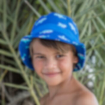 Playshoes Shark hyvännäköinen ja suojaava lasten aurinkohattu. Lierihattu, joka suojaa auringon vaarallisilta UV-säteiltä, on valmistettu pehmeästä ja joustavasta Oeko-Tex materiaalista. Erittäin sopiva hattu suojakerroin 50+ lomamatkalle tai kesäisin kotirannalle.
